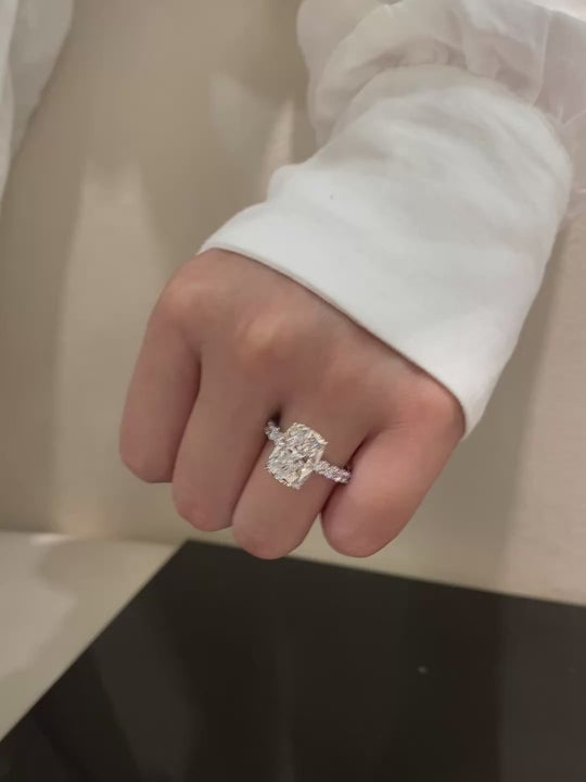 Lab Grown Diamond Ring | IGI Certified, E Color, VS Clarity, Elongated Cushion Cut 5-Carat