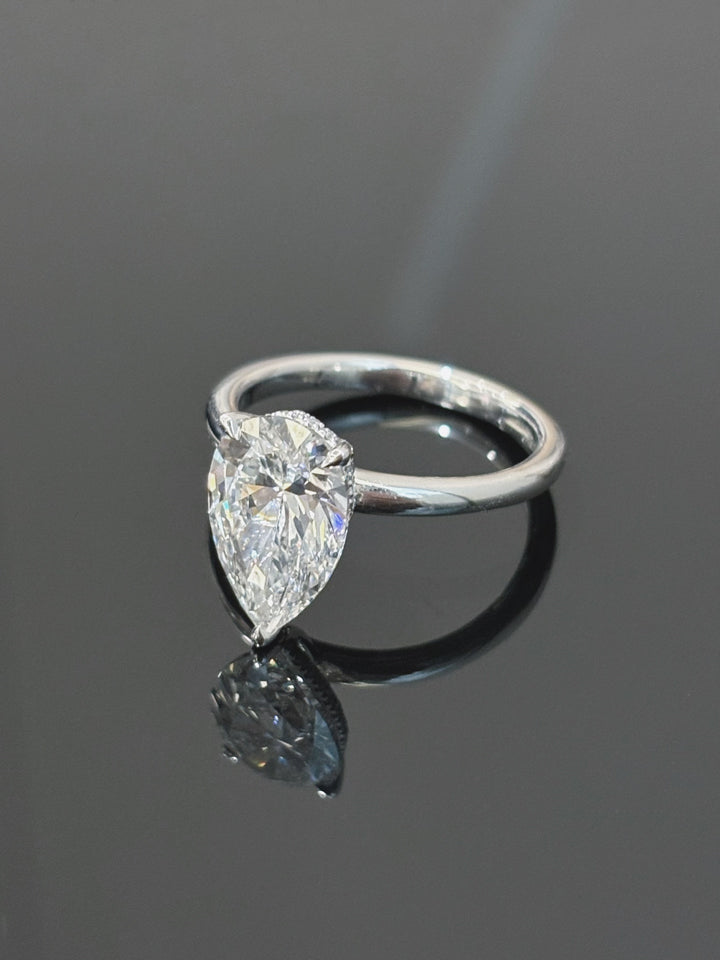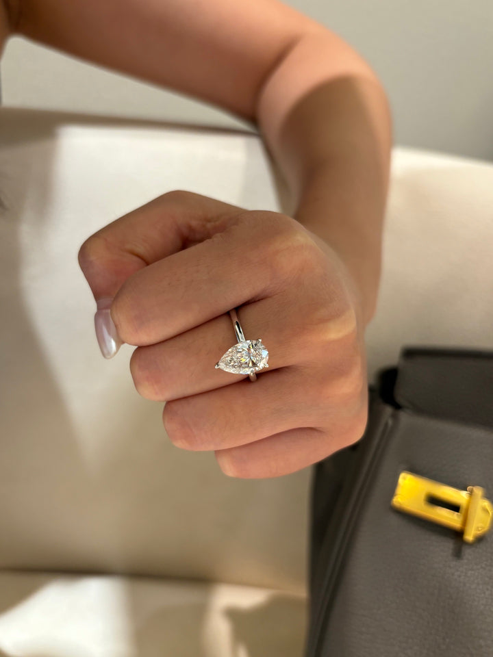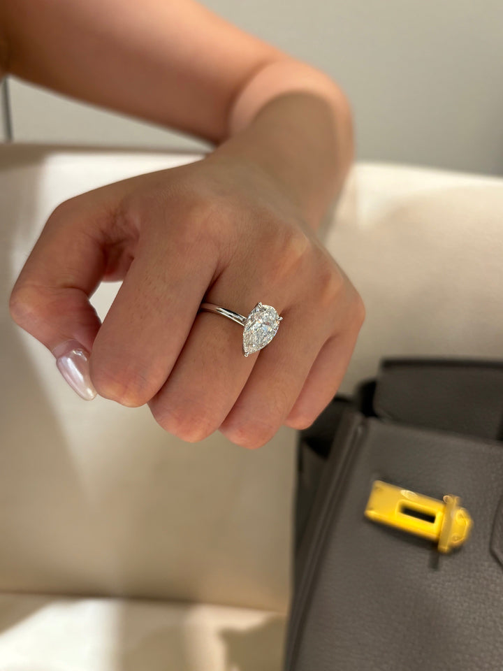 Simplicity meets spectacular brilliance in this timeless teardrop diamond ring. The elegant 3-carat center stone, complemented by delicate side diamonds, creates a look of understated luxury that you'll adore wearing every day. A classic design that never goes out of style.