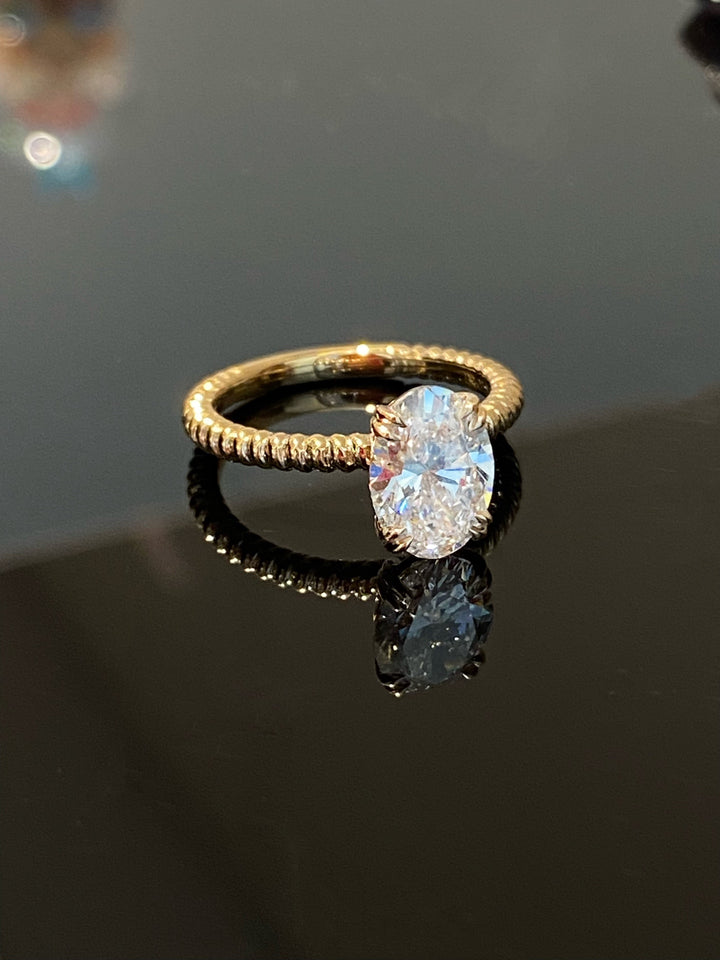 Oval Diamond Ring with Cable Twist Band | 2ct D Color VS Lab Grown | Dulci Diamond