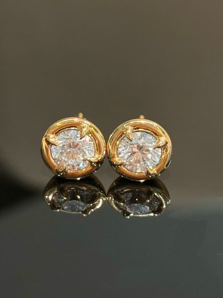 Vintage Bezel Set Round Diamond Stud Earrings | 1ct DEF VS Matched Pair | Dulci Diamond
