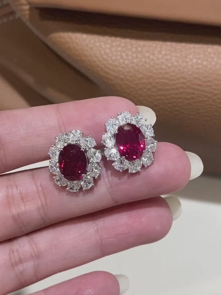 Luxury Ruby and Diamond Stud Earrings