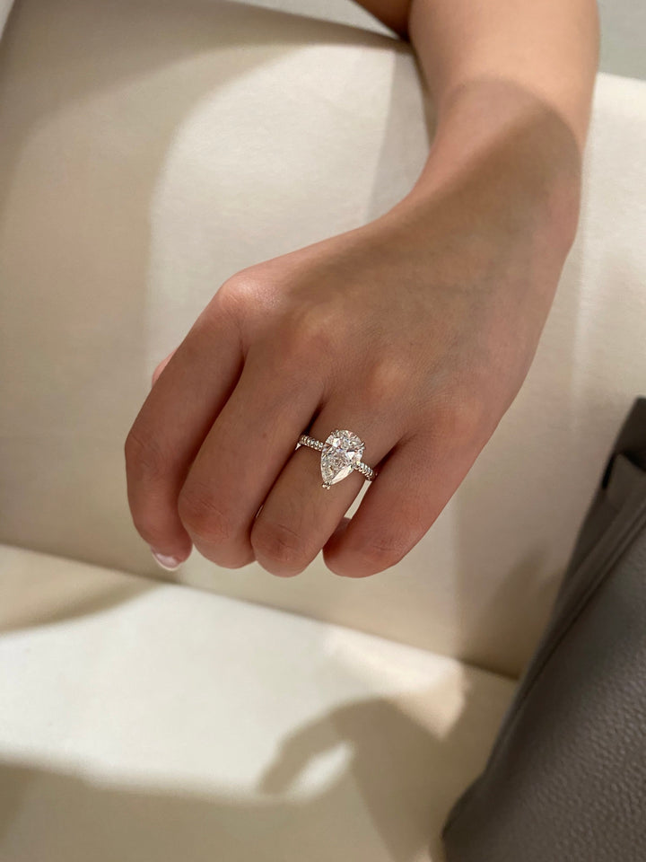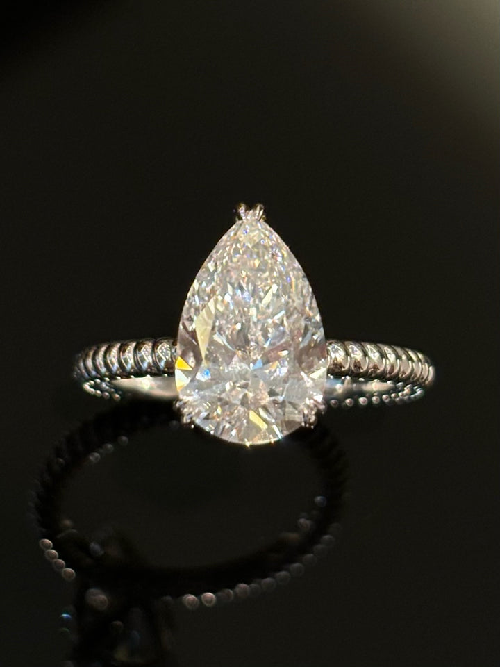 Fall in love with this captivating teardrop diamond ring, where timeless elegance meets modern design. The brilliant 3-carat center stone is complemented by a beautifully crafted twist band, creating a piece that's both sophisticated and fashion-forward. Its perfect balance of classic beauty and contemporary flair will make you never want to take it off.