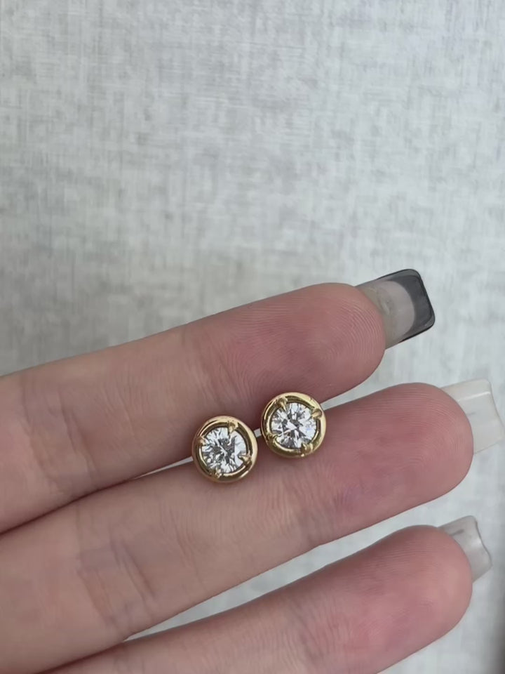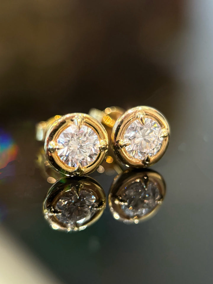 Vintage Bezel Set Diamond Stud Earrings | 0.5ct+ DEF VS-VVS | Dulci Diamond
