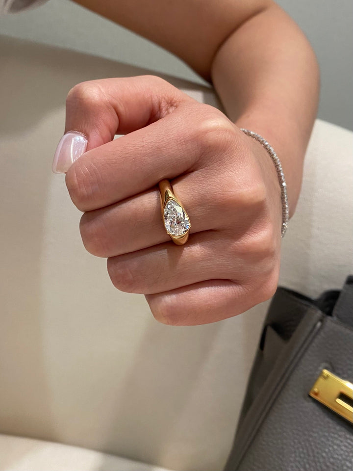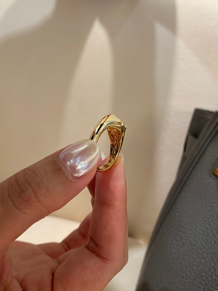 Command attention with this substantial bezel-set statement piece. Designed for maximum impact, its bold silhouette and ins-fashion aesthetic create a powerful presence on your hand. A truly addictive piece that you'll never want to take off.