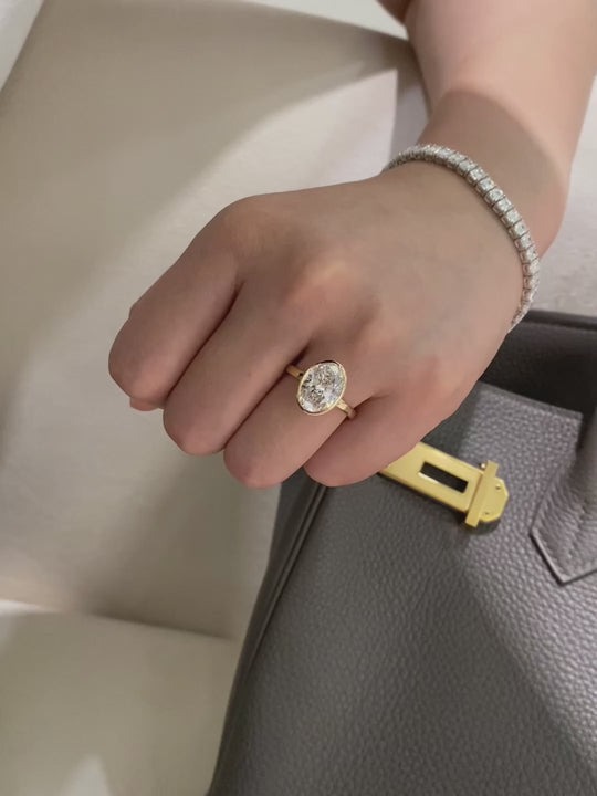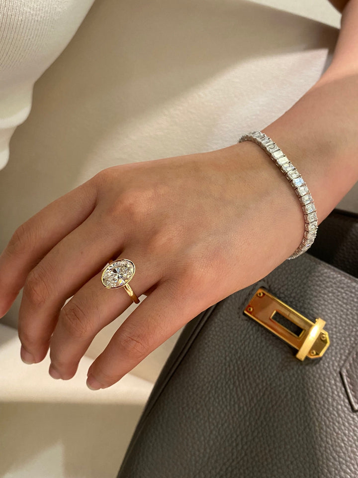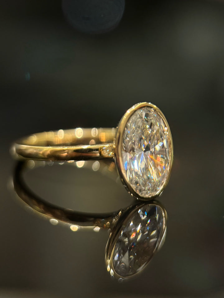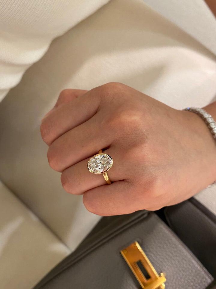 Old Money Style Oval Diamond Ring | 3ct E VS Bezel Set Lab Grown | Dulci Diamond