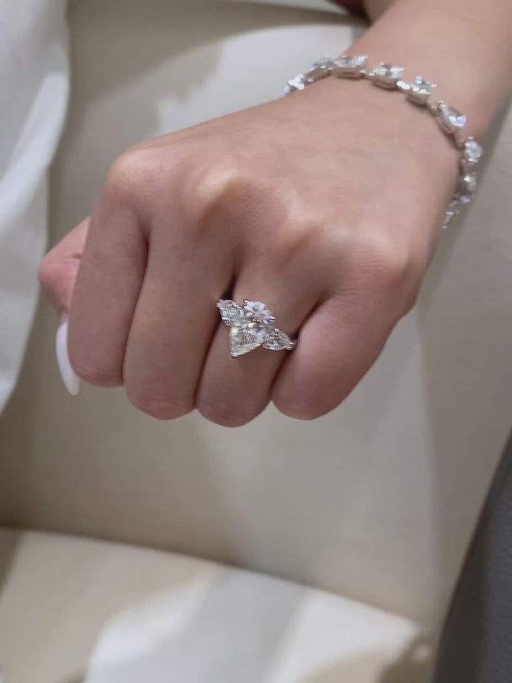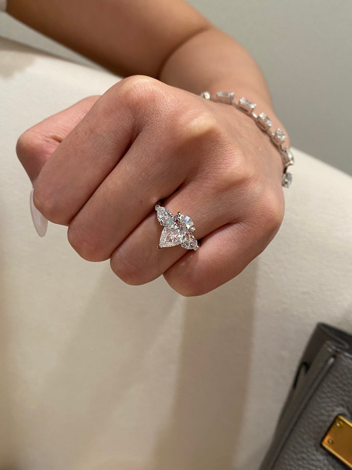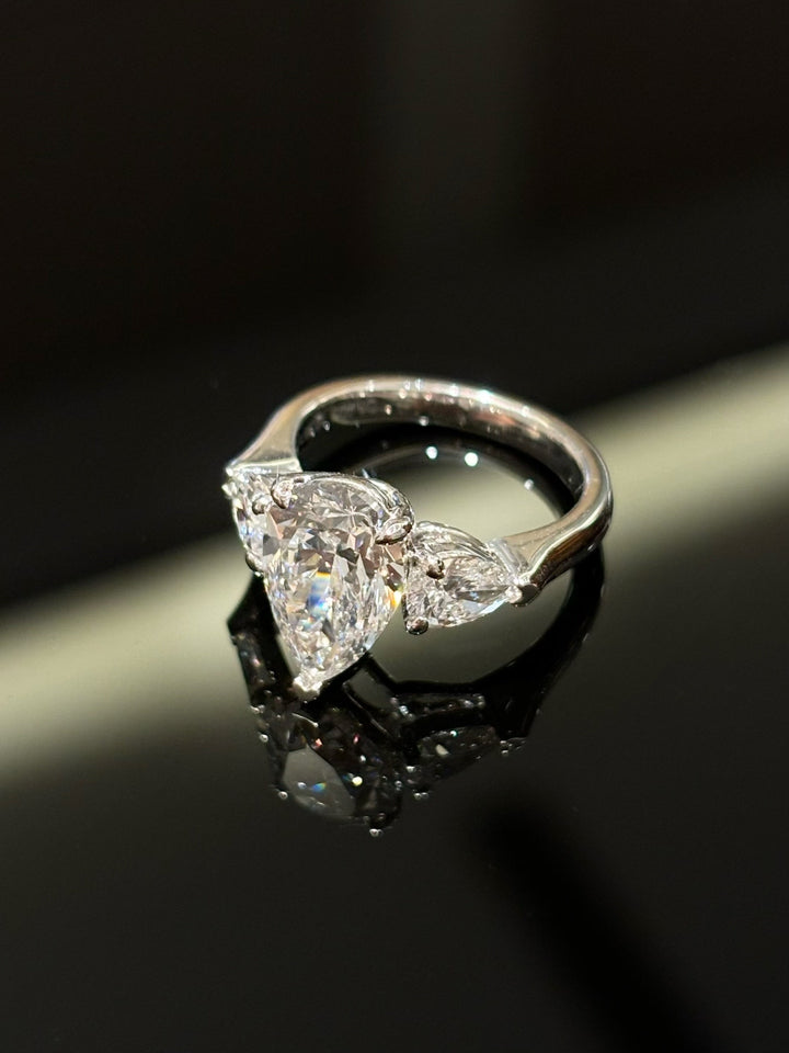 Experience the enduring appeal of this exquisite three-stone ring. Featuring a brilliant 3-carat center stone of exceptional quality (E color, VVS clarity), this timeless design symbolizes your past, present, and future. Its classic beauty transcends trends, creating a piece you'll adore for a lifetime.