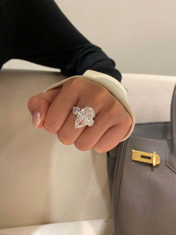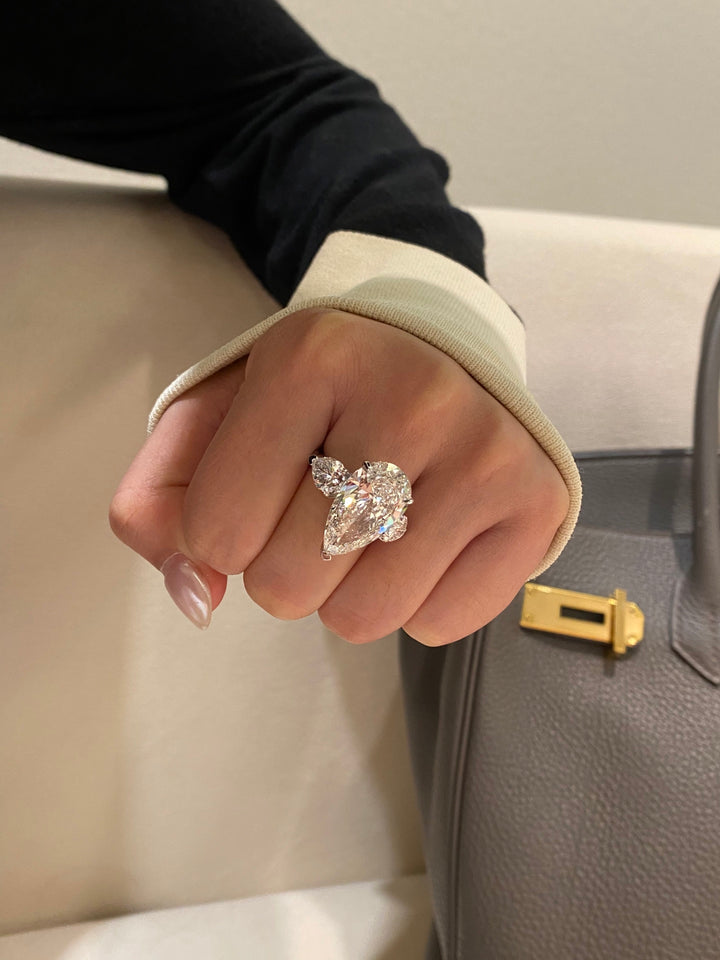 Elegant Three-Stone Diamond Ring with Teardrop Sidestones
