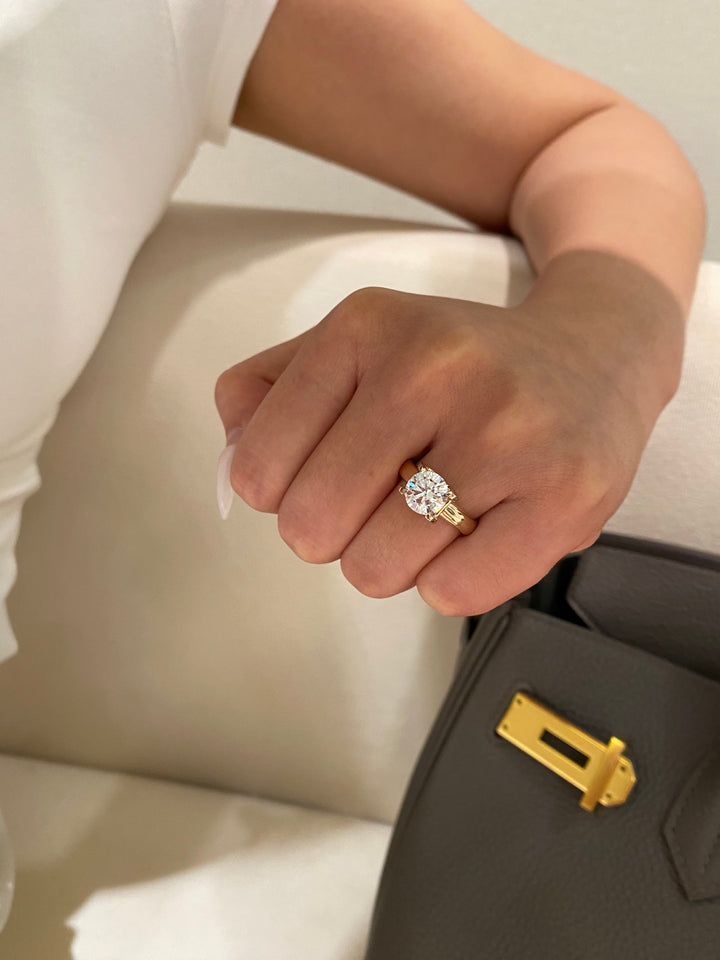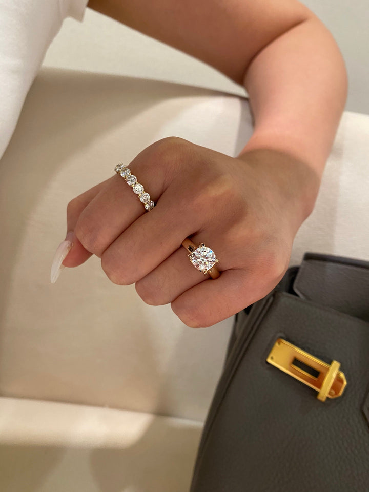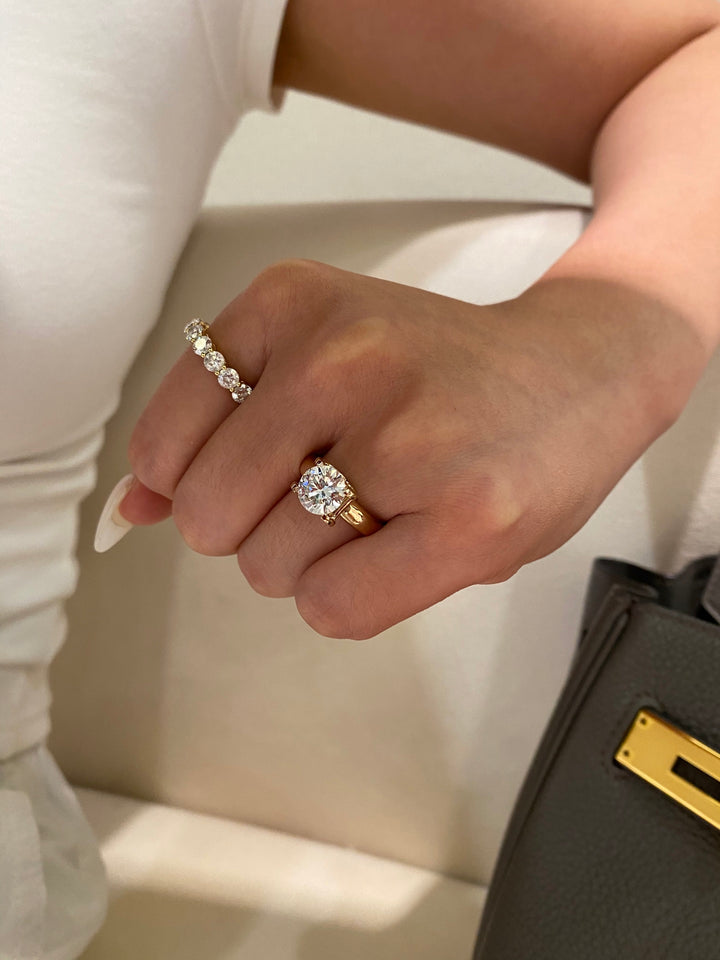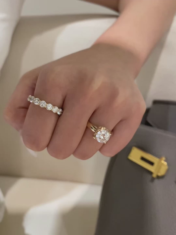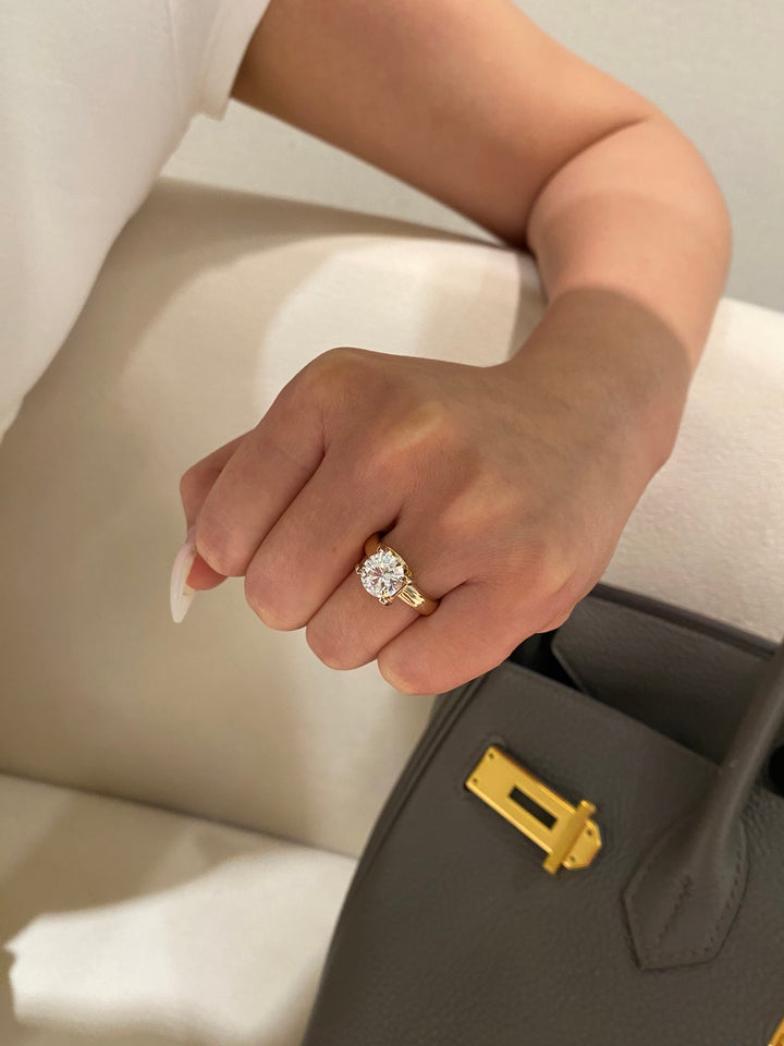 Embrace modern elegance with this exceptionally versatile round brilliant ring. The substantial setting showcases the 2-carat diamond's beautiful sparkle, while its sophisticated ins-style design makes it perfect for both solo wear and stylish layering. You'll love how it elevates every look with its contemporary yet timeless appeal.